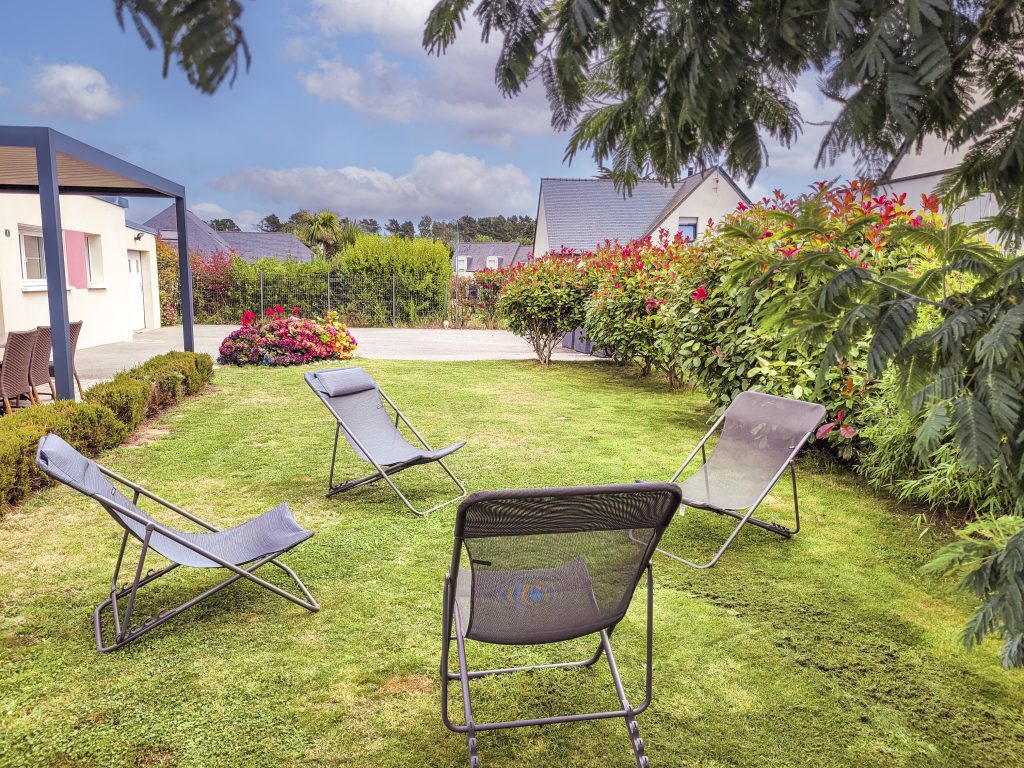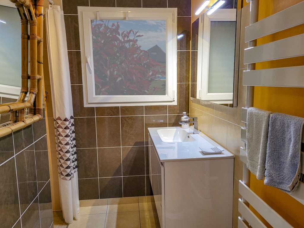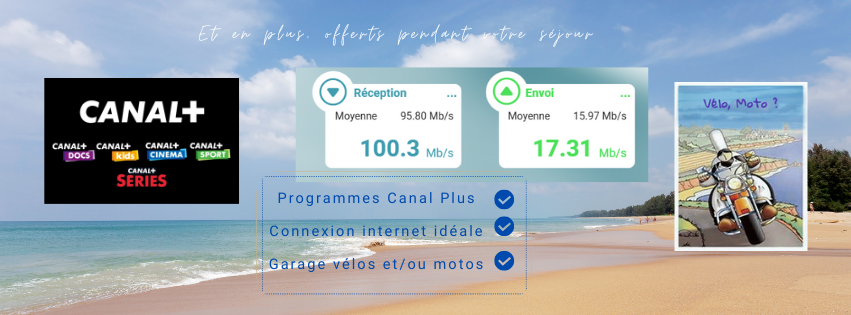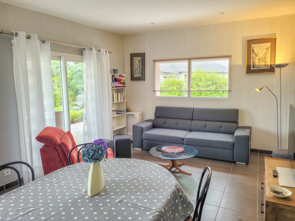L’accès à la maison s’ouvre sur un espace de vie lumineux, plein sud, doté d’un salon confortable avec une télévision grand écran et depuis ce printemps 2025 de toutes les chaines Canal+, sans majoration de prix, et d’une cuisine ouverte sur le séjour.
