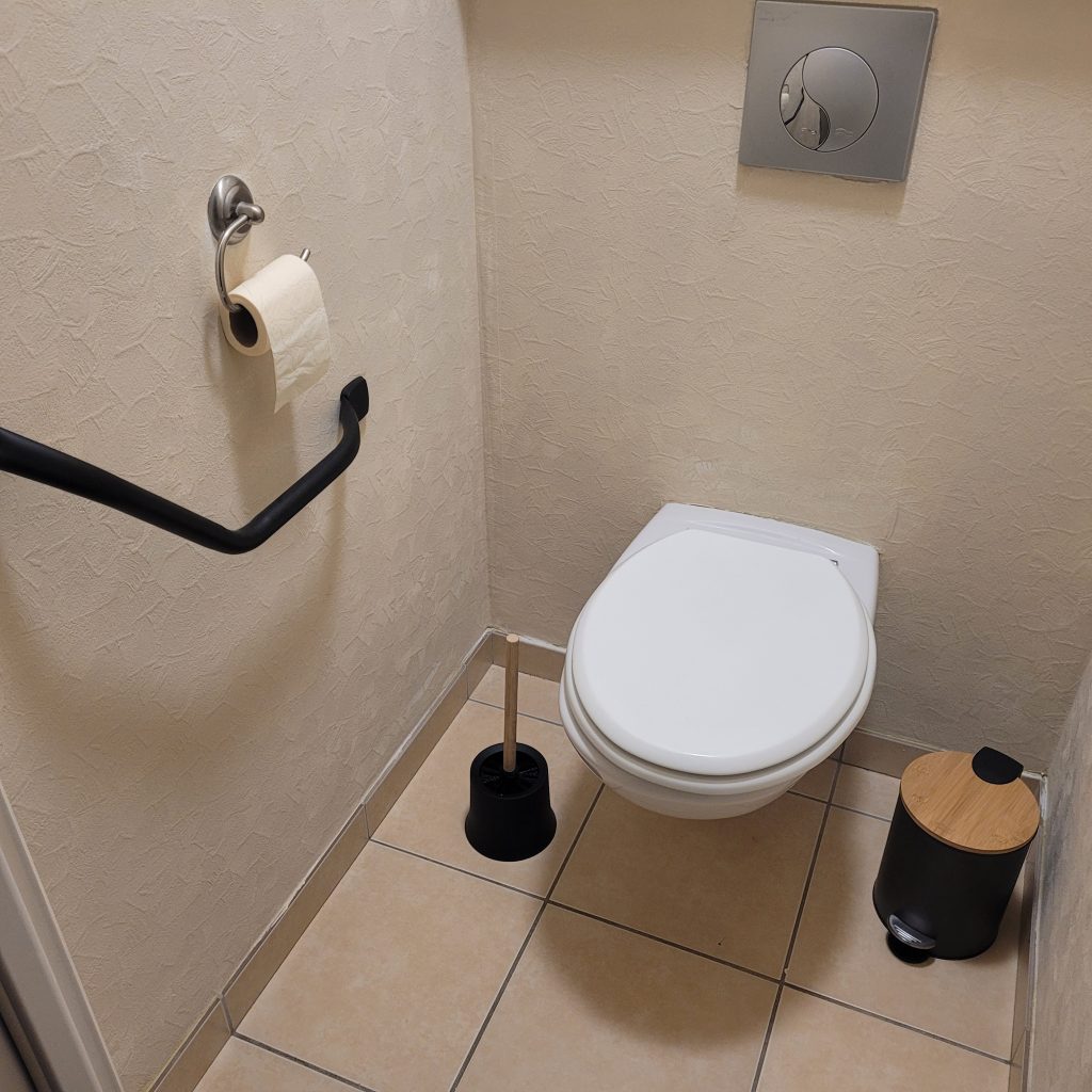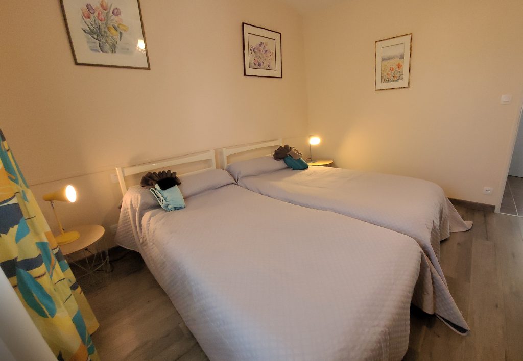 3 chambres spacieuses, l’une avec un lit King size de 160, la seconde de 140, les deux avec penderie murale, et la troisième avec 2 lits de 90 de large. un portant et une commode.